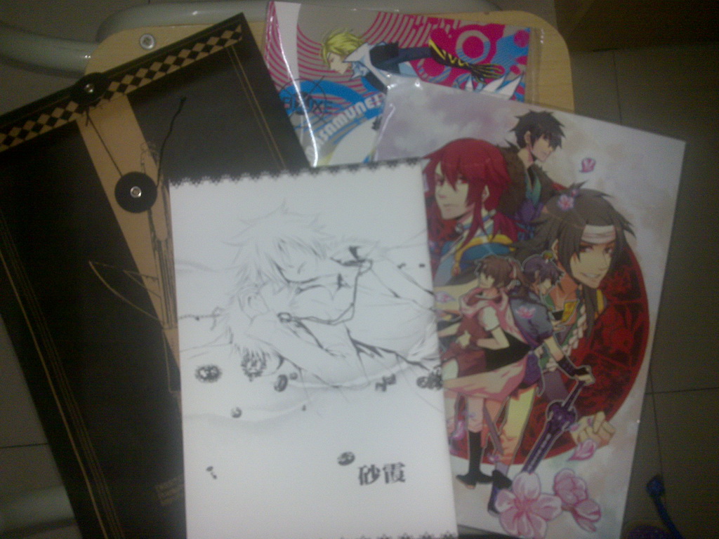 Rem君的本子《绝密情报》我……无耻地承认了自己被周边诱惑了。 因为这是本临帝而我基本上还是……帝临的。但是江户设定的车票夹可萌,档案袋和PVC卡神马的也萌。 本子本体的话……作为帝临的人来说觉得没怎么被雷到还有点小萌因为觉得有点帝临味道之类的话是不是有点失礼OTZZZ||||| 仙剑那本《生男恶》走得欢乐向,基本上我觉得不过不失吧,谈不上特别萌,但是画风什么的不错所以也不觉得亏。 但是人物形象真有点微妙,封面的重楼我好久才确定是,而星璇和思堂……真的不是拉面穿越吗?! 小十政的《DELUXE masamune!!》的话,又是意料之外的惊喜><! 之前买过这个作者的《我的心里有鬼》,觉得很萌,所以这次看到有寄卖就收了她的既刊。本来以为欢乐向的感觉会一般(这个人笑点奇怪),但是真的翻阅以后觉得这简直是直击萌点! 无论是前面的小十郎x政宗(*2)还是后面的佐助和幸村(*2)都欢乐极了ww对我来说这算是这次展上最超值的本子之一? 最后就是Rui君(或许叫初代目更亲切些?笑)的6927本了。 说句实话《砂霞》宣传的时候其实我看到过……但那时候一来已经不太买家教本了,二来……虽然有点失礼但是实话,初代目你的本子封面太朴素了不是那种会让人第一眼注意到的类型啊TvT明明你的彩图很棒的! 拿到本子的时候先是草率地翻了一遍,封面的手感很棒。等到故事阅读完毕的时候我觉得我的萌点跟虐点被一并戳中了><! 明明就是很棒的本子明明黑暗又治愈(?)的6927神马的可美可是为啥居然会没多少人repo这本?!我觉得可萌了就像之前DRRR的合志我去找来看的时候也觉得初代目自己的脚本最对我的胃口…… 接下来是一点其他的东西。