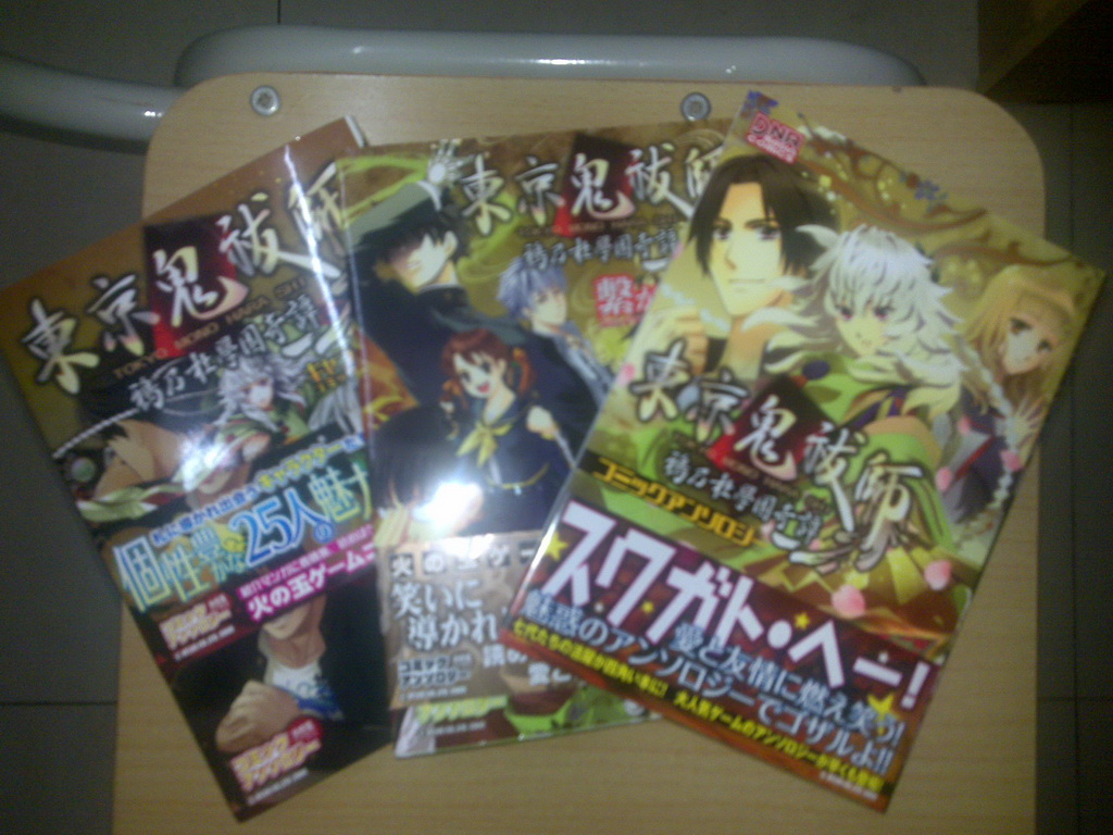 开场之前拜托舞顾了一会摊,先去把朋友拜托的本子买了,自己在天窗上刷到的在意的本子逐个翻了下,结果还是临时划掉了几本。 成果基本如下。 小十政一本,仙剑本一本,DRRR一本,家教一本。 其实入手的倒不止这些,但小说本基本都是提前到手所以就没放出来了。 阿水的《执迷不悟》,叽叽和锅锅的《ComeONONON!!》还有瑟琳的《失衡》都很不错,不过文大多都在网上有我也懒得评价了……OTZZZ 师太的原本也想入手的不过我对繁体竖版阅读障碍……(默默看向了自己书柜的一堆台版书||||| 漫画本也还有nian君的猫耳和From本,因为收起来了也就懒得拿出来照了,故事和画风都超可爱的www 然后其实也关注了全场唯一一本游戏王的本。 封面倒还是可以的,可是现场翻阅的时候,虽然觉得摊主姑娘人很好本子画得也还行啦……但是真的好薄!35元大概只有10P左右的本(没数不确定)感觉还是有些偏贵了。 草率翻阅的感觉是欢乐路线,收录的文应该是一代也就是DM背景的,但是后面看到的repo说短漫似乎有点意味不明? ……好吧其实我是在找拔草理由,我本来第二天还想去看看的因为觉得有纪念意义多少还是有一点想入手,不过今天就完全没看到了囧。 原本也很想场购神奇的寒青本《太平村》,但是最终屈服于周边的诱惑下选择了通贩……不过去现场翻了本子,可萌了超可爱!